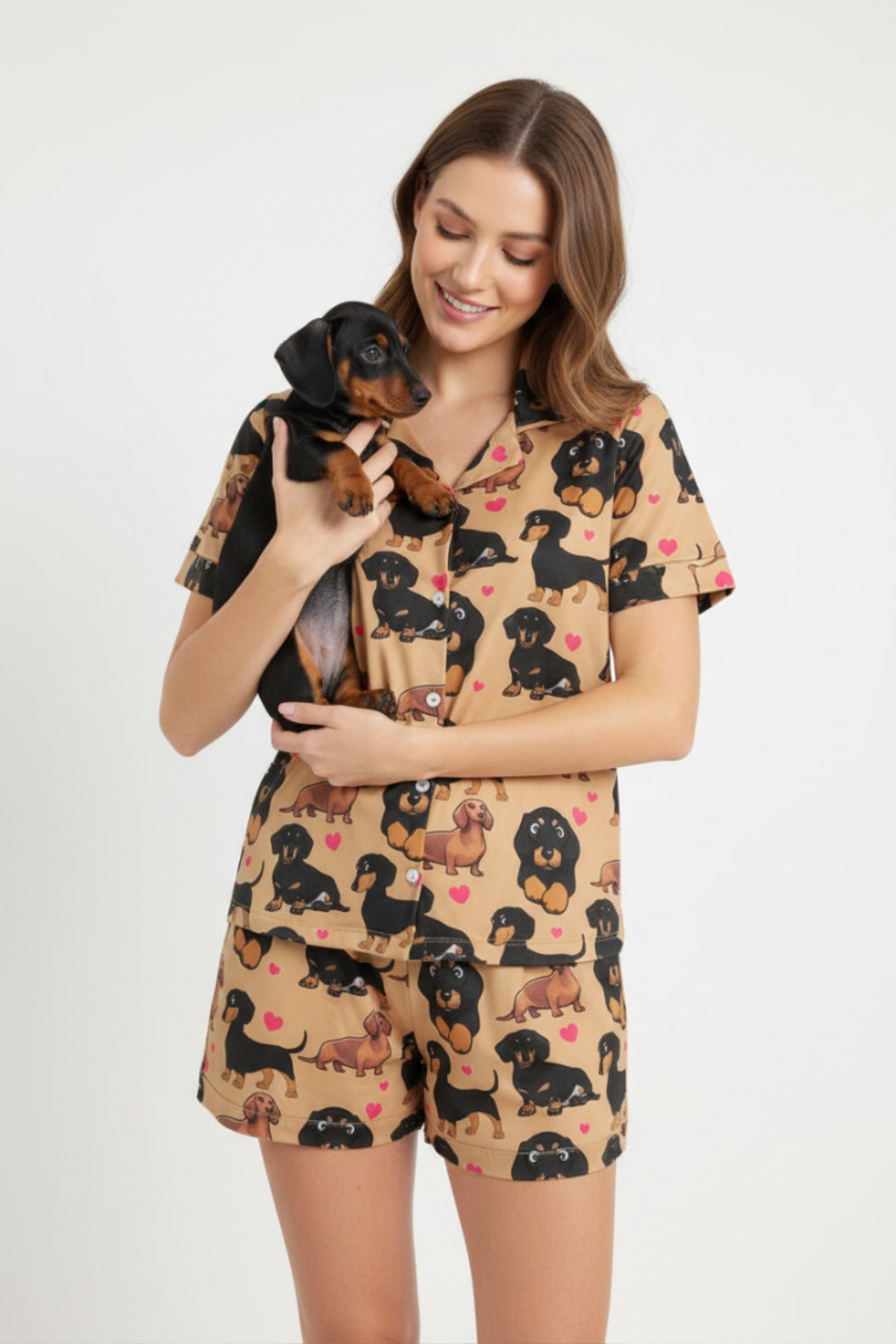 Dale un toque de ternura y alegría a tus noches con esta hermosa pijama de short con estampado de perritos. Diseñada para quienes aman los detalles únicos, esta prenda combina comodidad, frescura y un estilo encantador que roba miradas.