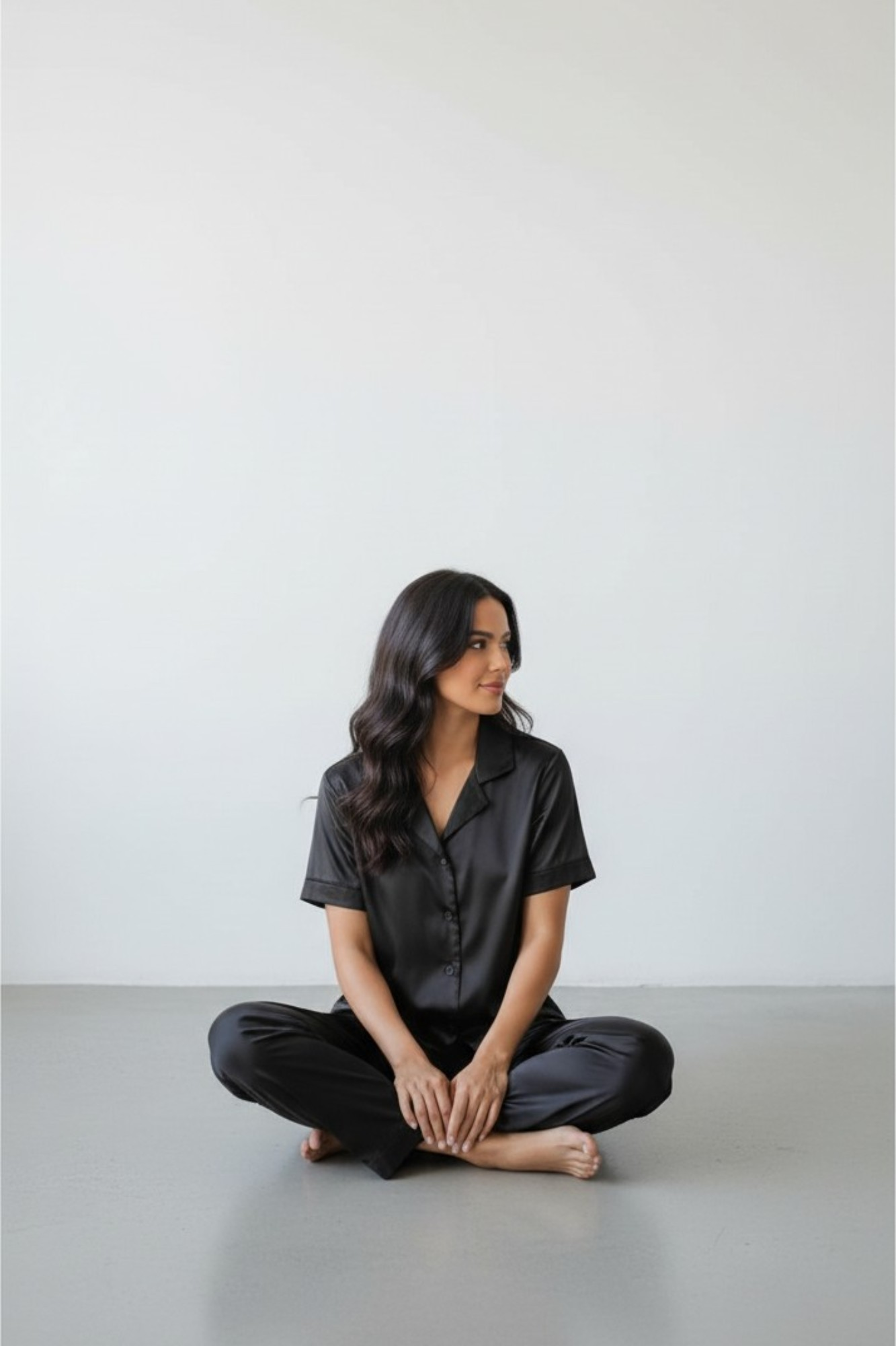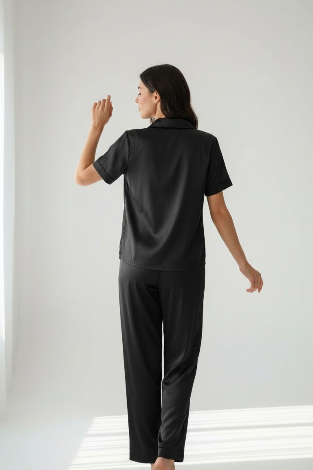 Pijama en Satín para mujer, pantalón largo, tela suave y elegante.